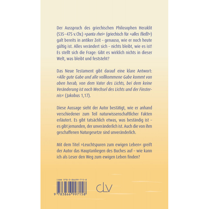 Mit dem Titel »Leuchtspuren zum ewigen Leben« greift der Autor das Hauptanliegen des Buches auf – wie kann ich als Leser den Weg zum ewigen Leben finden?