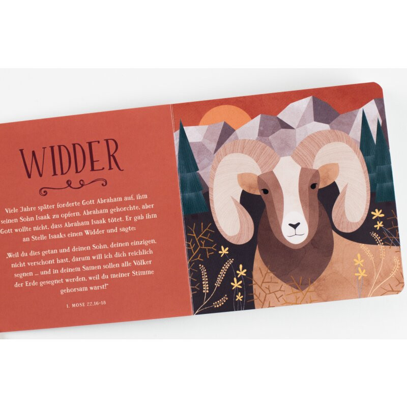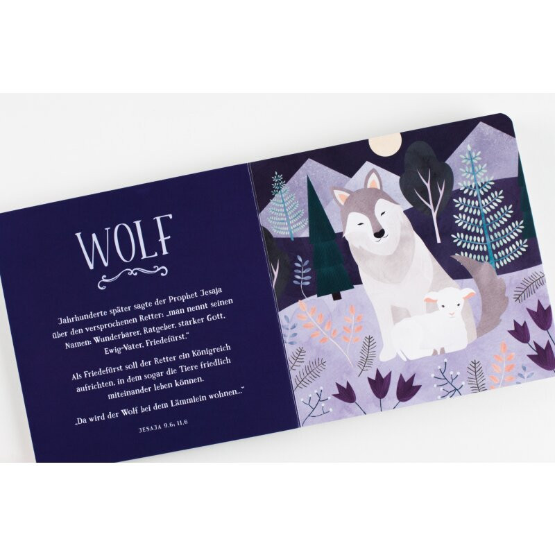 Pappbilderbuch: Schön gestaltetes Pappbilderbuch über Tiere, die bei den Verheißungen des ersten Kommens des Messias eine Rolle spielten