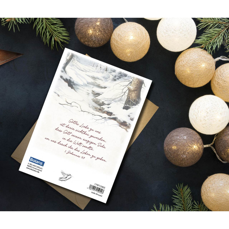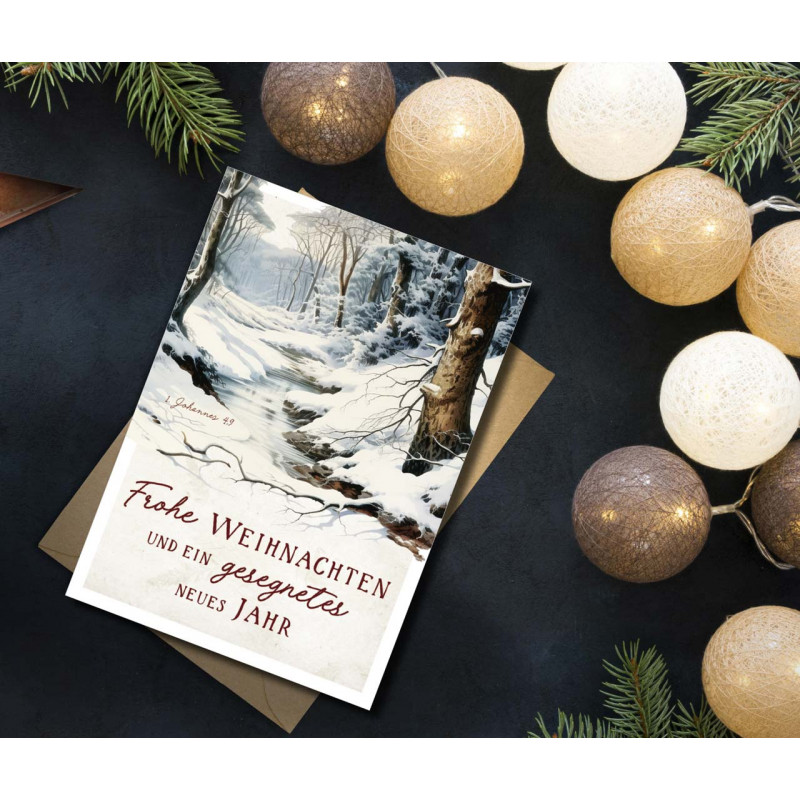 Aufdruck vorne: Frohe Weihnachten und ein gesegnetes neues Jahr - 1. Johannes 4,9