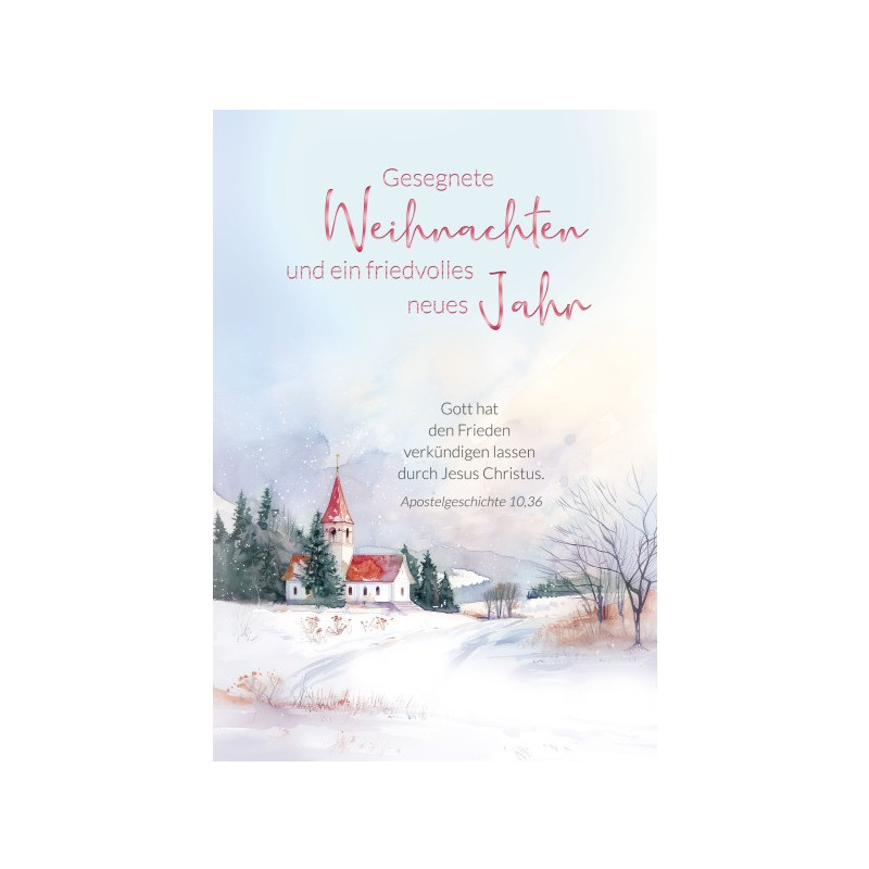 Aufdruck: Gesegnete Weihnachten und ein friedvolles neues Jahr - Gott hat den Frieden verkündigen lassen durch Jesus Christus. Apostelgeschichte 10,36