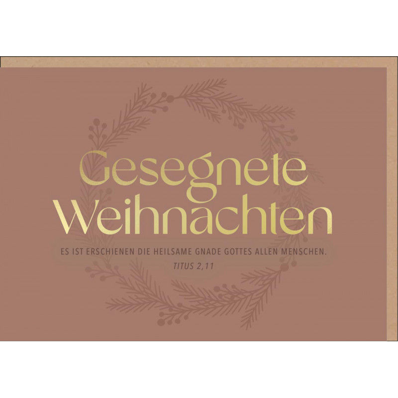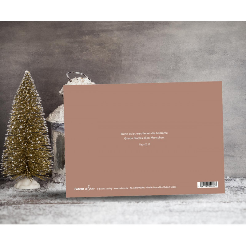 Aufdruck vorne: Gesegnete Weihnachten - Es ist erschienen die heilsamen Gnade Gottes allen Menschen. Titus 2,11