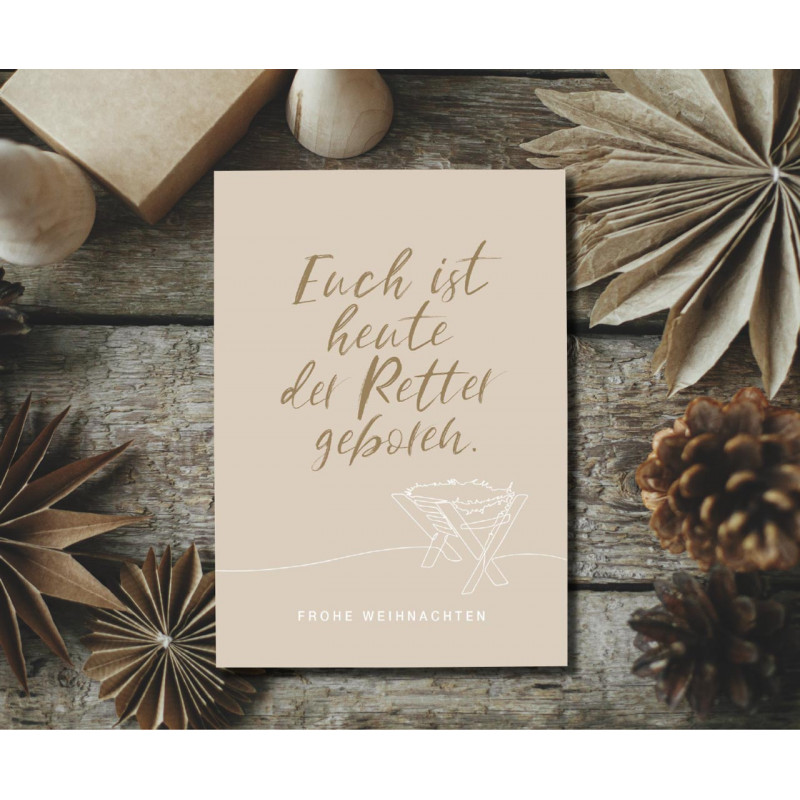 Mit Bibelvers: Euch ist heute der Retter geboren.