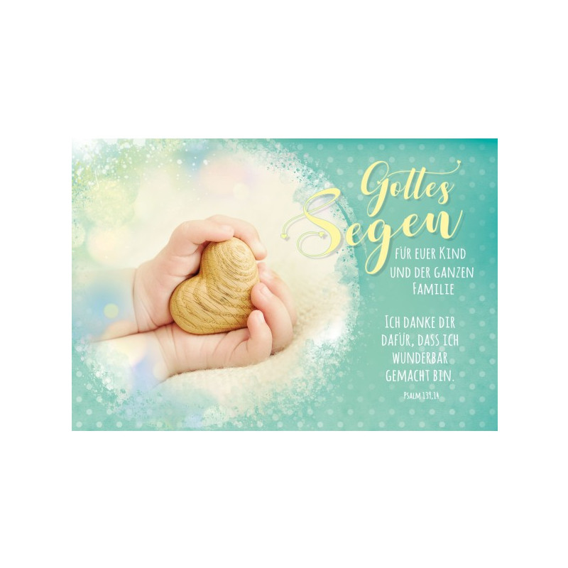 Aufdruck: Gottes Segen für euer Kind und der ganzen Familie - Ich danke dir dafür, dass ich wunderbar gemacht bin. Psalm 139,14