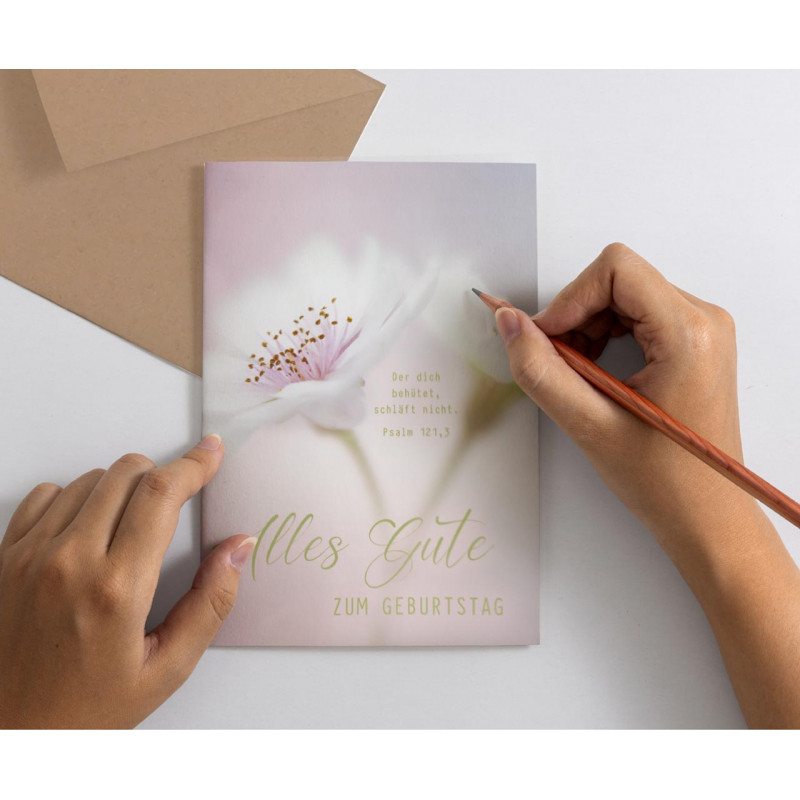 Aufdruck vorne: Der dich behütet, schläft nicht. Psalm 121,3 - Alles Gute zum Geburtstag
