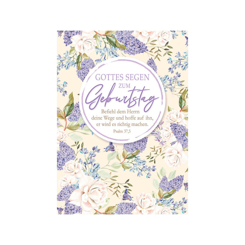 Aufdruck: Gottes Segen zum Geburtstag - Befiel dem Herrn deine Wege und hoffe auf ihn, er wird es richtig machen. Psalm 37,5