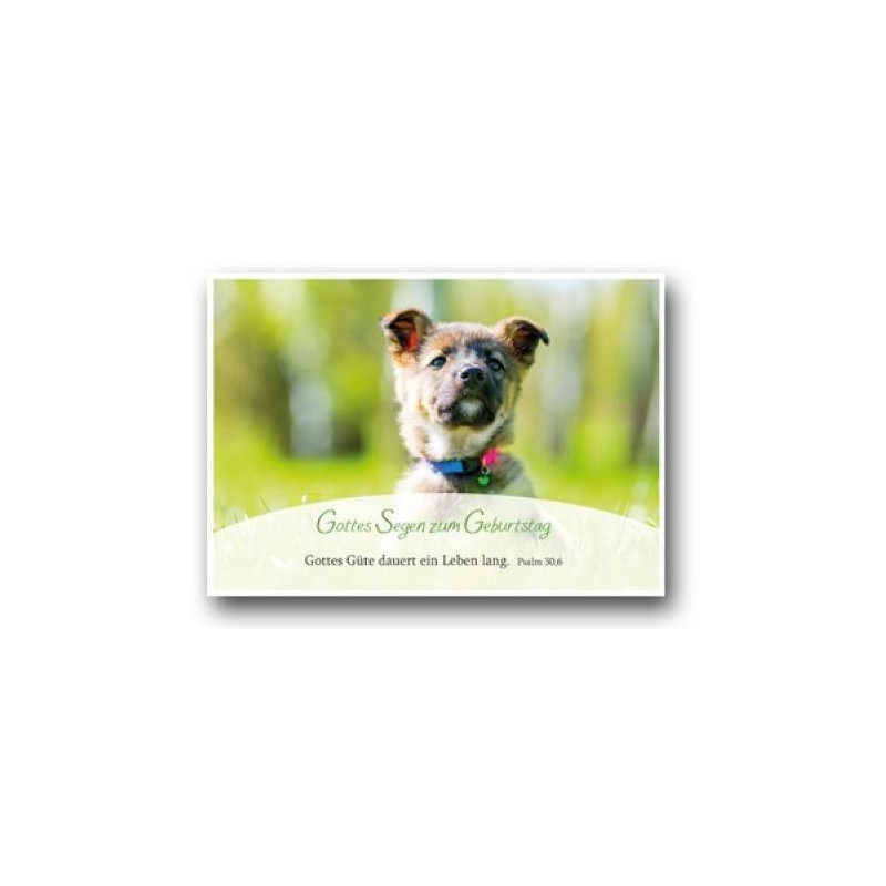 Postkarte zum Geburtstag mit dem Aufdruck: Gottes Segen zum Geburtstag - Gottes Güte dauert ein Leben lang. Psalm 30,6