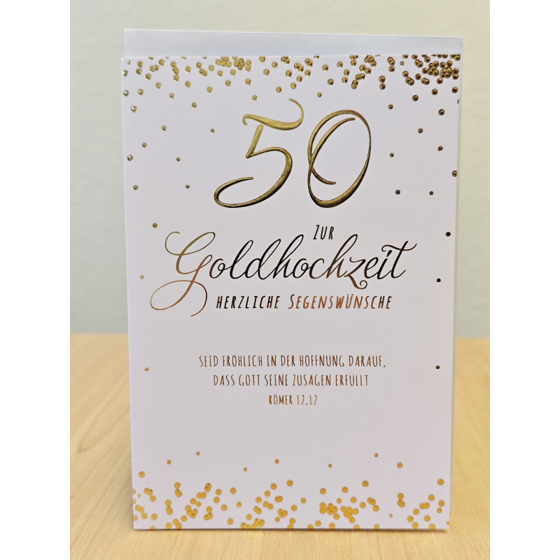 Aufdruck auf der Karte: Zur Goldhochzeit - Herzliche Segenswünsche