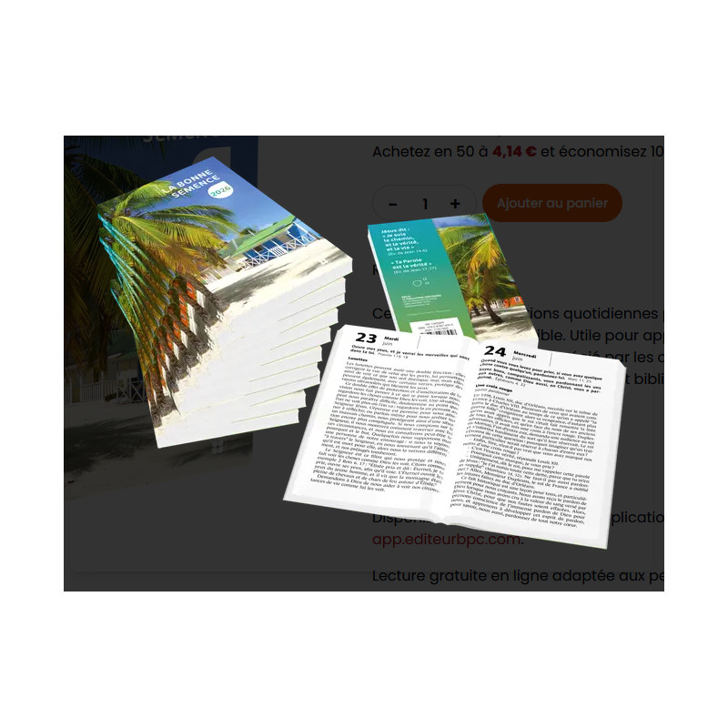 Dieses Andachtsbuch enthält 365 tägliche Andachten, die als Buch gebunden sind, mit einem Lesezeichen, das passend zum Umschlag gestaltet ist.