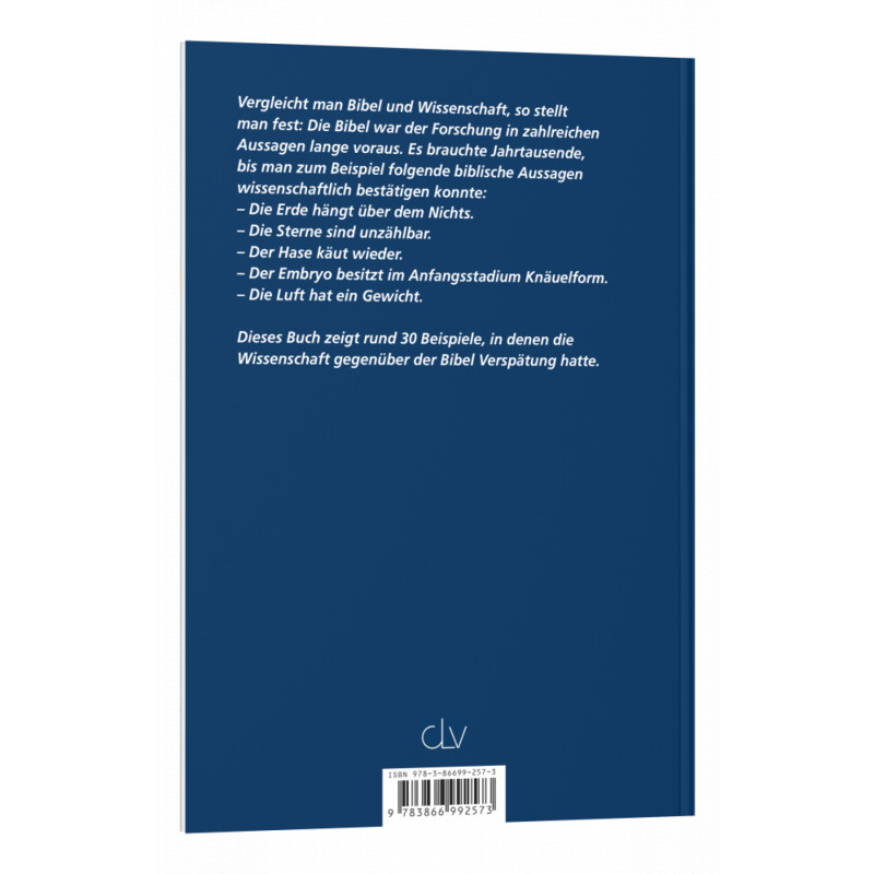 Vergleicht man Bibel und Wissenschaft, so stellt man fest: Die Bibel war der Forschung in zahlreichen Aussagen lange voraus. Es brauchte Jahrtausende, bis man zum Beispiel folgende biblische Aussagen wissenschaftlich bestätigen konnte: