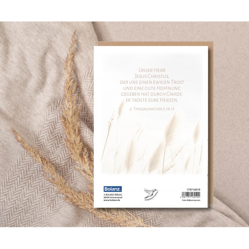 Aufdruck hinten: Unser Herr Jesus Christus, der uns einen ewigen Trost und eine gute Hoffnung gegeben hat durch Gnade, er tröste eure Herzen. 2. Thess. 2,16+17