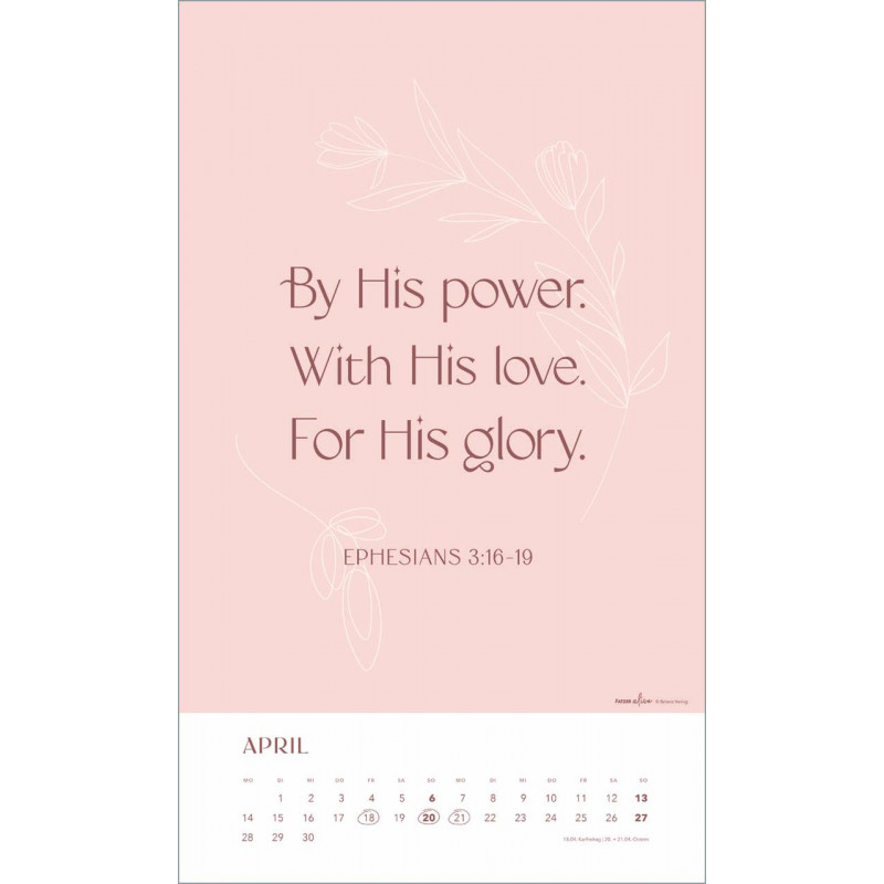 Der "Glaube im Alltag" Posterkalender ist nicht nur ein praktischer Begleiter, sondern auch ein wunderbares Geschenk für Freunde und Familie, die sich nach Ermutigung und positiver Energie sehnen. Hol Dir diesen Kalender und starte inspiriert in Dein Jahr 2025!