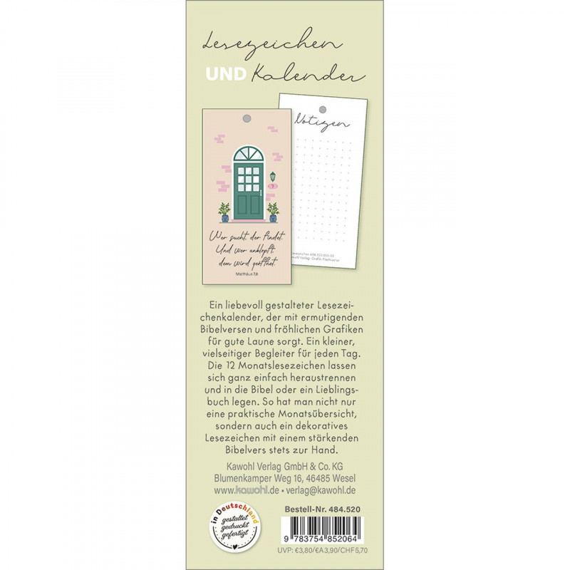 Lesezeichen-Kalender: - mit Bibelversen - mit Grafik in moderner Gestaltung - Klebebindung - 12 Lesezeichen zum Abtrennen - Platz für persönliche Notizen auf der Rückseite
