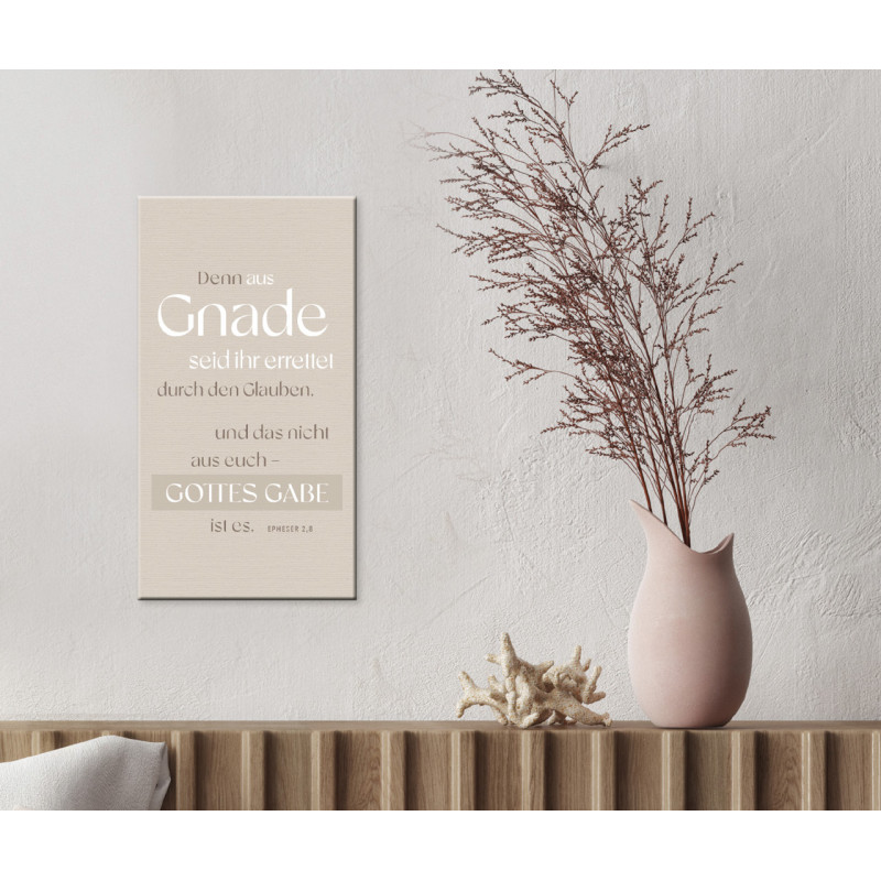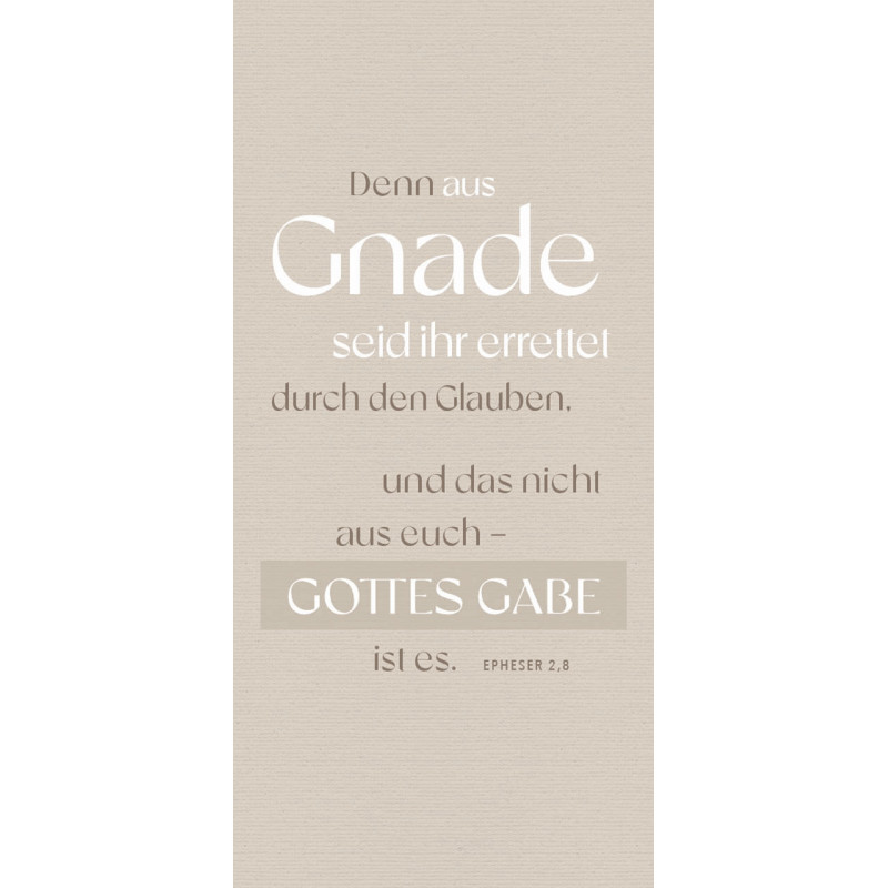 Aufdruck: Denn aus Gnade seid ihr errettet durch den Glauben. Und das nicht aus euch - Gottes Gabe ist es. Epheser 2,8