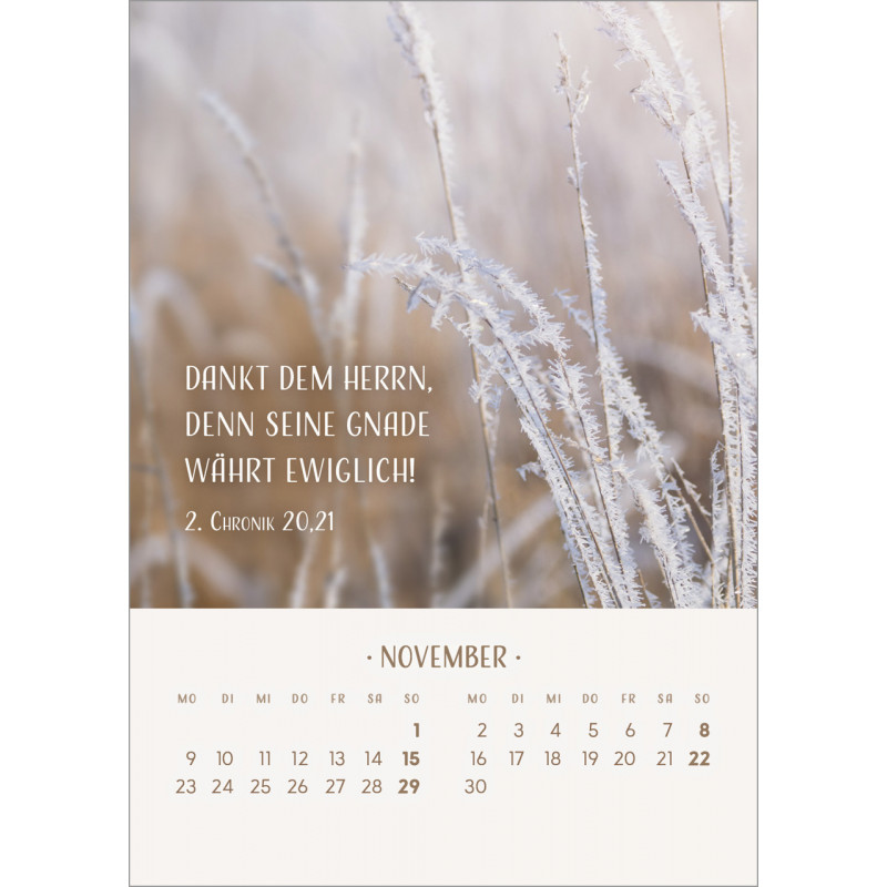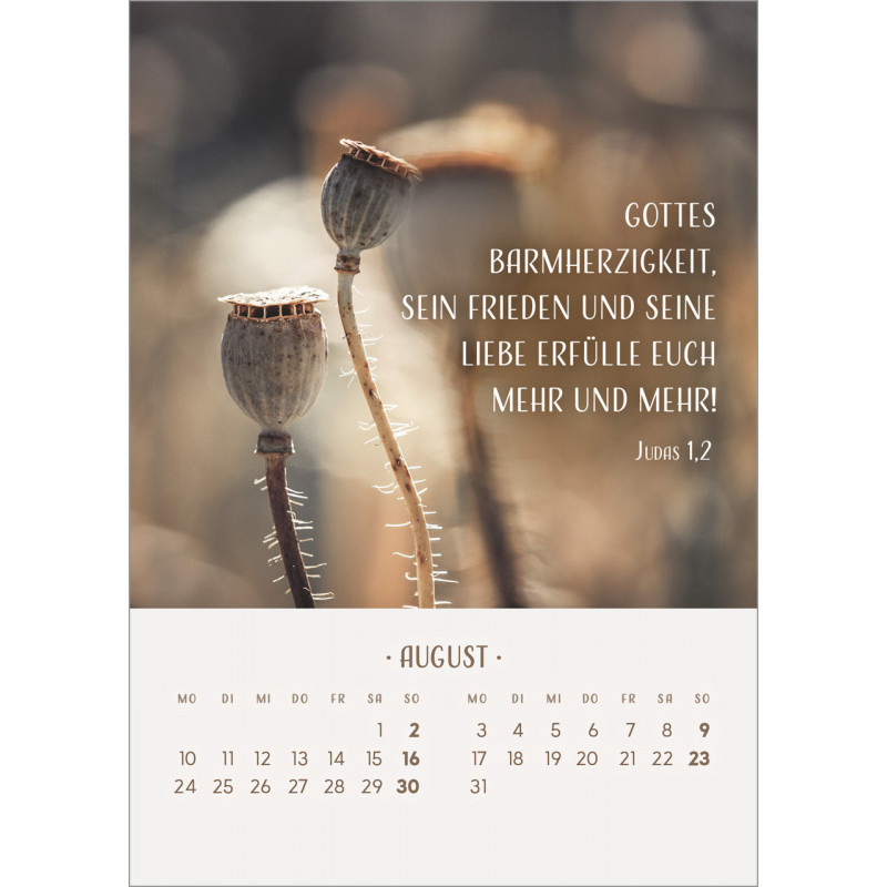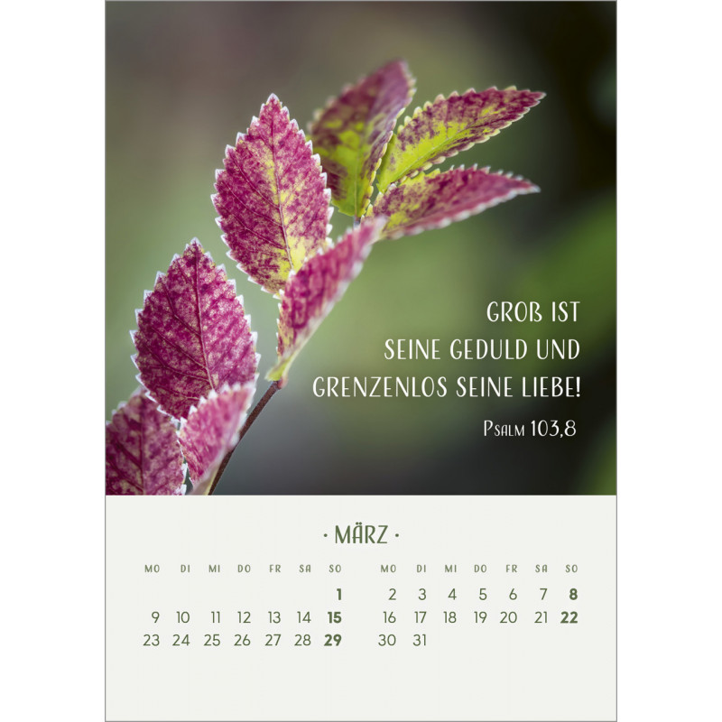 Der kleine, aber feine Kalender für zu Hause oder Büro. Einfach aufstellen und jeden Monat ein neues Kalenderblatt nach vorne stecken. 12 Monatskarten, 1 Deckblatt und mit dekoraktivem Holzaufsteller.